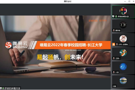 长江大学2022届毕业生春季校园招聘会(计科类专场),采用全线上模式,是疫情形势下对于就业工作新形式的探索。学生、企业反响较好,能够较好解决企业招聘难、学生求职难,以及疫情情况下线下招聘难的问题,也为下一步就业工作做出了良好的榜样和探索,是一次较为成功招聘会。