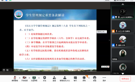 相关管理制度进行介绍,颜书记着重选取《长江大学学籍管理》中部分内容做了详细解读。随后,颜书记又对学生来校途中及报到后在校期间的管理做出各项安全提示。会议议程第三项,大福online