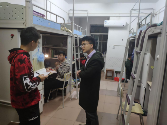 10月28日晚9:30,大福online 全体辅导员在颜学俊副书记带领下检查学生寝室,了解学生学习生活情况,提醒学生注意用电安全。
