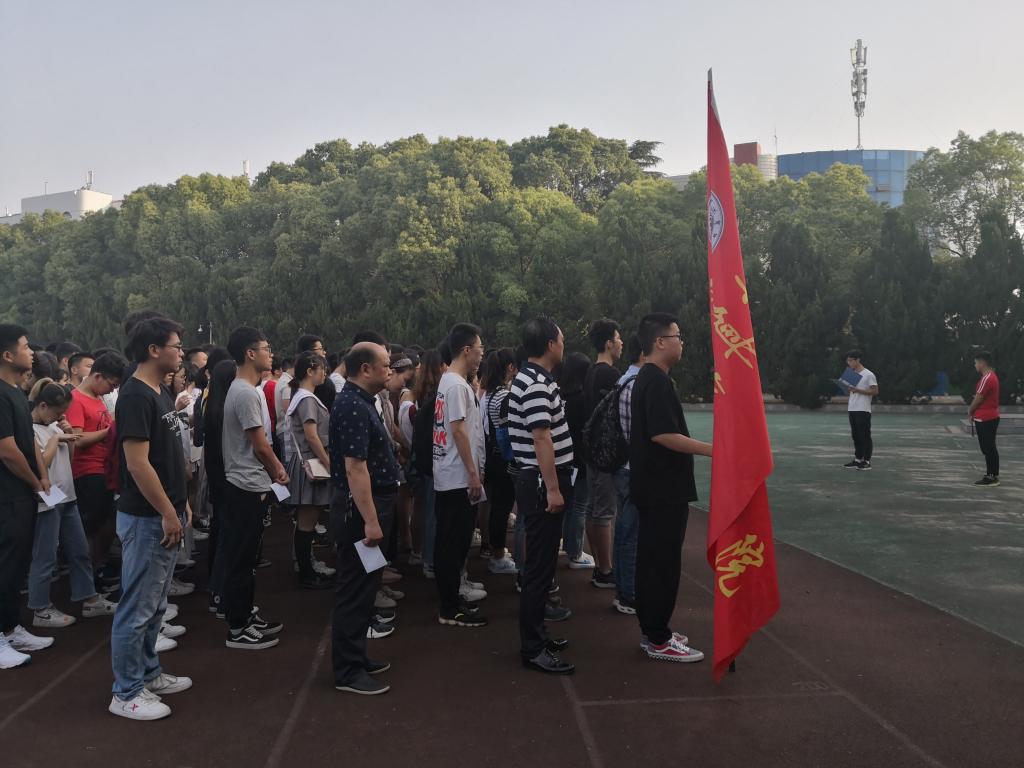 党委书记高明成、副书记向宇、18级辅导员老师及18级全体学生参加了升旗仪式。本次升旗仪式由18级李传奇同学主持。伴随着激昂雄壮的国歌声,鲜艳的五星红旗冉冉升起,迎风飘扬,全院师生肃立注目。