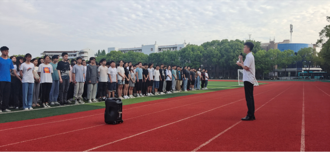 仪式第三项,2021级辅导员张颖旭作题为《志存高远、勉力笃行》的国旗下讲话,张老师结合当下毕业季部分学生不能顺利毕业的情况,警示同学们要提前做好规划,多向榜样看齐,积极进取。他讲到:“青年当志存高远。见贤思齐焉,见不贤而内自省也。大一时期,我们就要学会向榜样看齐,向优秀看齐,向标兵看齐。万不可放松自我,万不可佛系躺平。躺平意味着在愈发内卷的竞争浪潮中,被裹挟着前进,缺少主动性自然走不远,自然会被淘汰”。在讲话的最后,张老师祝愿同学们在外语等级考试和期末考试中旗开得胜。