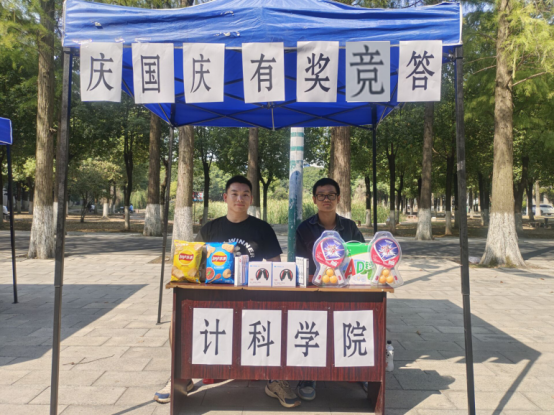 (通讯员:郭帅/摄,司博/文)为庆祝祖国诞辰73周年,形成积极进取、爱国爱党的氛围,培养同学们的爱国热情。2022年10月1日,计算机科学学院在活动广场举行了“庆国庆,学四史,有奖竞答”活动。