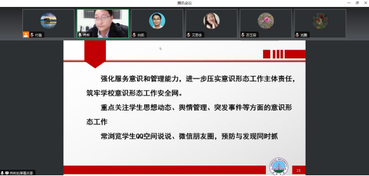 本次工作会议肖彬副书记主要从“日常管理及安全稳定、心理健康教育工作、就业工作、学业情况、意识形态工作”等五个方面对班主任老师提出了工作要求,通过结合大福online官网