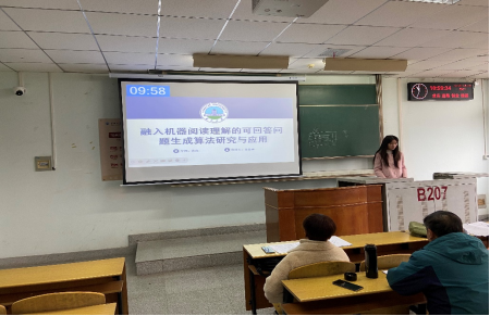 3位研究生依次登台演讲,分别围绕各自的研究方向,为同学们分享了3个课题。陈家俊同学分享的课题是大豆茎秆相关表型智能获取算法研究与应用;金思雨同学的题目时融入机器阅读理解的可回答问题生成算法研究与应用;曾天豪同学分享的课题是交通标志的小目标检测技术研究等内容。学术论文报告会已经成为同学们交流研究方向、研究进展的重要途径之一。在演讲过程中,老师们和同学们耐心听学术汇报,记录对于自己研究的进展有用的信息。每名研究生演讲完后,导师从多个角度对演讲人的汇报进行仔细点评,对其研究内容可能遇到的科研困难进行指导,通过点评让汇报人知道了自己一些不足的部分,有利于研究的进行。
