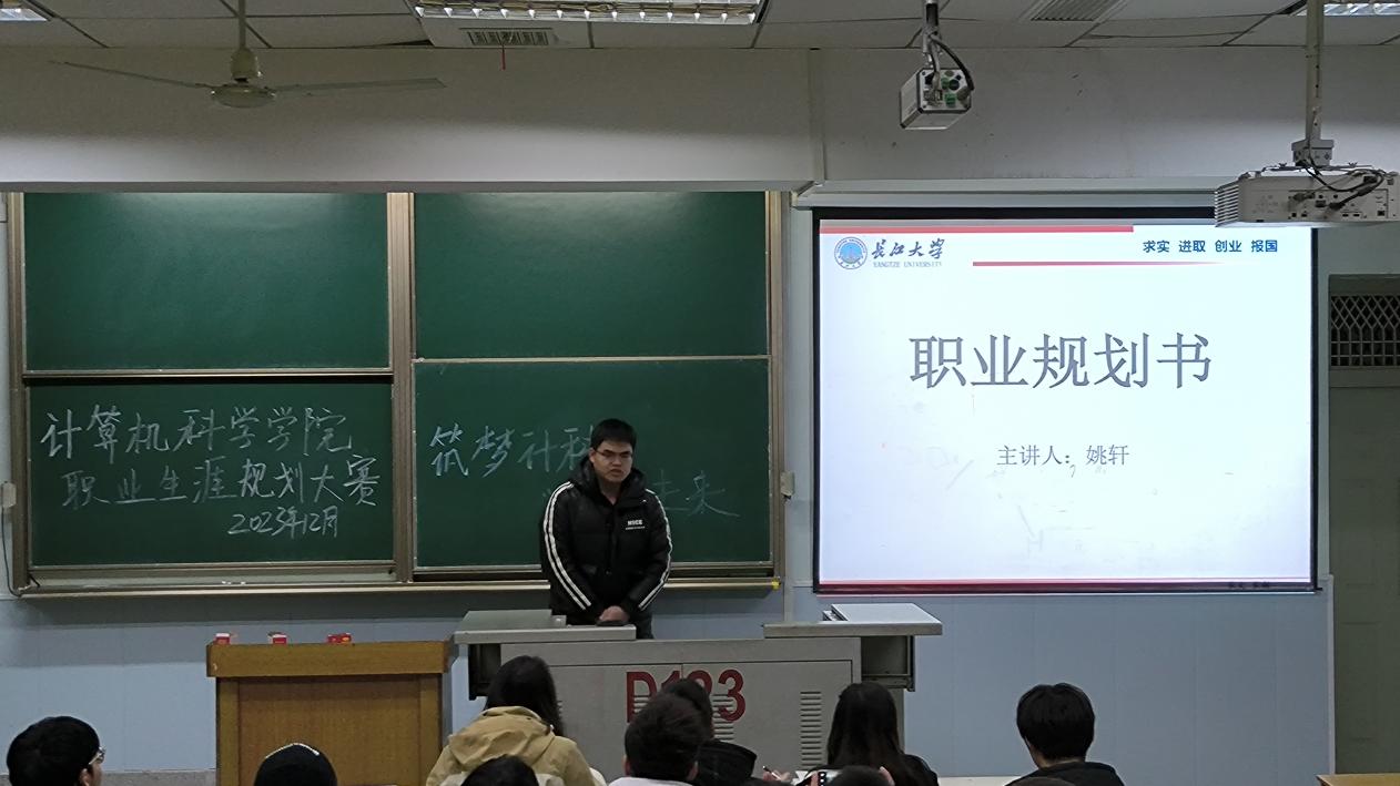 筑梦计科,“职”引未来 ——大福online 举第一届职业生涯规划大赛成功举办 为了更好地激发大福online官网 学生的职业生涯规划意识,帮助同学们更好地认识自我、完善自我,提高大学生职业规划能力和就业能力,12月19日晚7点,大福online官网 在13教D123开展了以“筑梦计科,‘职’引未来”第一届职业生涯规划大赛。辅导员张茜、余珺瑞、高滢、蒋代运受邀作为本次大赛评委。 比赛通知一经发出,就受到了同学们的热烈响应,本次共有26名同学进入大福online 线下初赛环节。根据学生实际情况,职业生涯规划大赛分为两个赛道,低年级同学可报名成长赛道,高年级同学可报名就业赛道。所有参赛者每人限时5分钟,主要围绕自我认知、职业认知、职业决策、计划实施等方面进行职业规划PPT展示。在每一个选手自我展示过后, 评委嘉宾结合选手表现,会进行相关提问和给与建议,最终综合考察评分。 据悉,首届全国大学生职业规划大赛由教育部、上海市人民政府共同主办,采用校赛、省赛、全国总决赛三级赛制。 大赛包括学生成长赛道和就业赛道,每个赛道设高教组和职教组,另设大学生职业发展与就业指导课程教学赛道。比赛主要考察学生职业发展规划的科学性和围绕实现职业目标的成长过程,通过学习实践持续提升职业目标的达成度,增强综合素质和能力。
