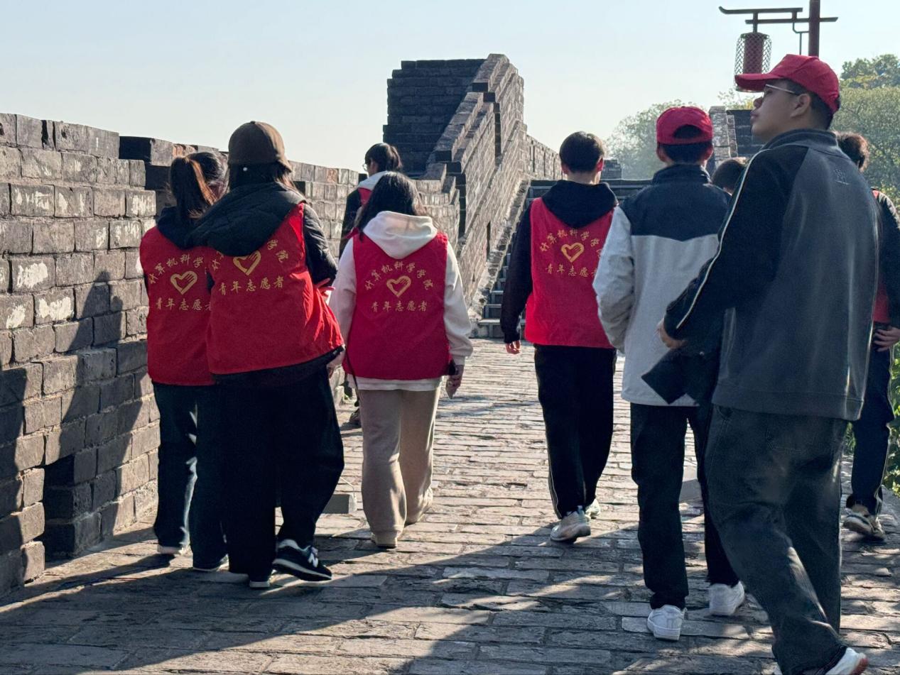下午两点,志愿者们在辅导员艾思含带领下,身着统一的红马甲,手持清洁工具,准时在古城墙集合。在简短的动员仪式之后,志愿者们分为多个小组,井然有序地进行各处的清扫活动。在活动过程中,志愿者们秉承着不怕脏,不怕累的信念,充分发挥团队协作精神,齐心协力清扫每一个角落。志愿者们利用工具仔细捡拾城墙砖缝的落叶与垃圾。尽管城墙的部分区域难以清理,但志愿者依然坚持到底,确保所经之处不留下任何垃圾。许多游客和市民纷纷对志愿者们的行动表示支持与赞赏。