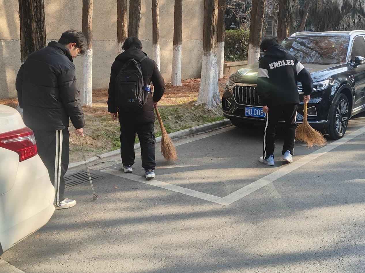 活动负责人合理分配各项劳动任务,叮嘱相关注意事项,师生们清扫马路和绿化带、捡拾烟头、清运垃圾,认真清扫责任区每一个角落。