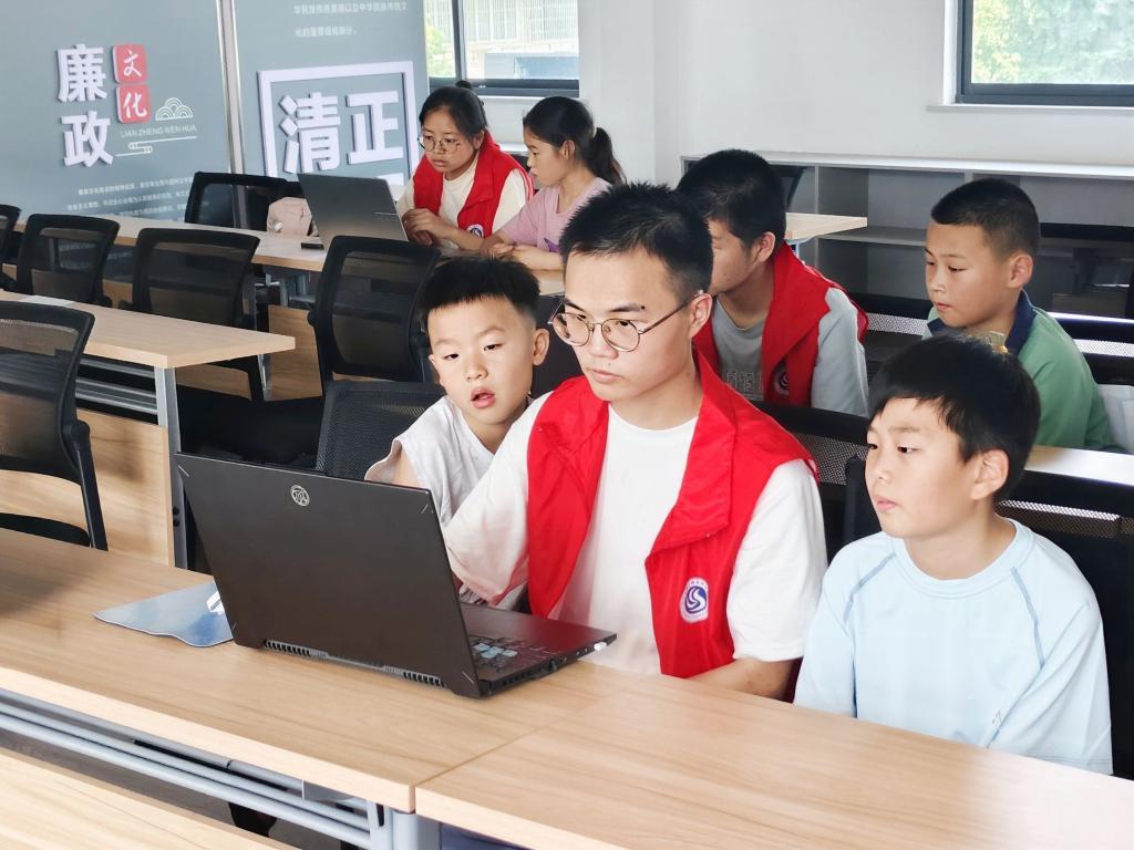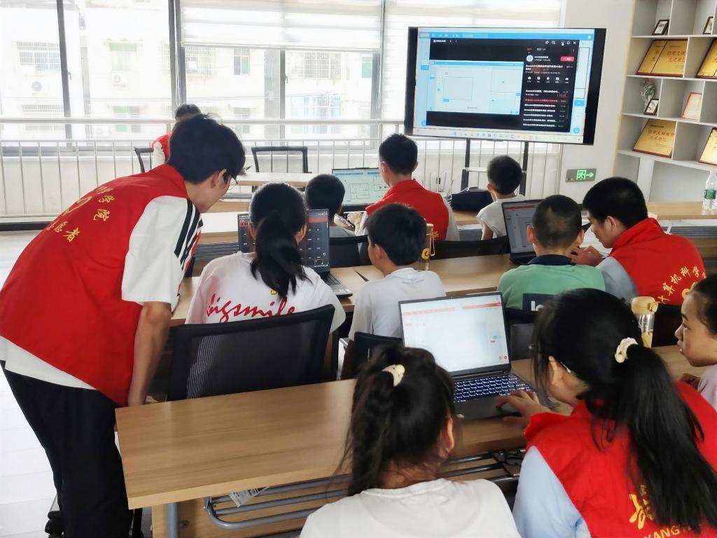 为了丰富孩子们的视野,激发科技兴趣,志愿服务队结合自身专业优势,特设“趣味编程”小课堂,通过图形化编程、小游戏设计等形式,向孩子们介绍计算思维与简单的编程逻辑,帮助他们走近科技,激发探索的好奇心。“原来电脑里的动画片是这样做出来的!”三年级学生小林惊叹道,一颗科技启蒙的种子正在悄然萌芽。