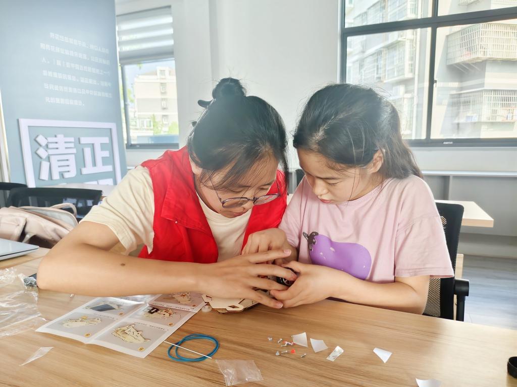 志愿者们还开设了“创意遥控车拼装”小课堂,耐心讲解齿轮传动、电机的原理,指导孩子们识别零件、拼接车身、调试遥控器。孩子们举着组装好的遥控车,兴奋地操控着它转弯。在动手实践中,孩子们不仅掌握了机械知识,更让探索科技的兴趣悄然生长。