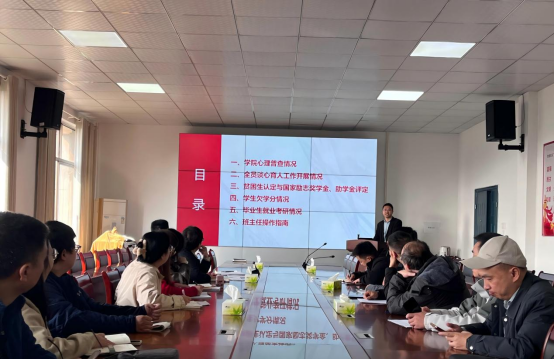 党委副书记艾林主持会议并作专题部署,全体班主任参会。会议围绕学生心理健康、资助评定、学业帮扶及就业考研等关键工作展开详细部署,为后续学生工作高质量推进划定清晰路径。
