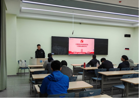 研究生党支部在16教A105开展了2025年12月政治理论学习活动,本次活动由研究生党支部书记付盈老师主持。