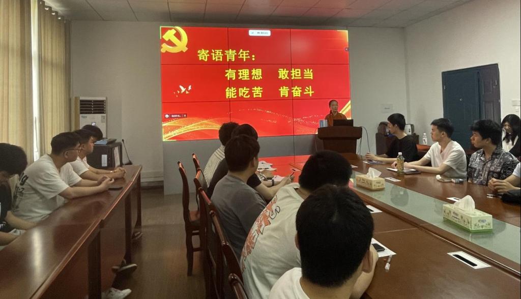 党委书记黄群俊老师主讲,本科生第一党支部书记高滢老师主持,2023年上半年147名新认定入党积极分子参加。
