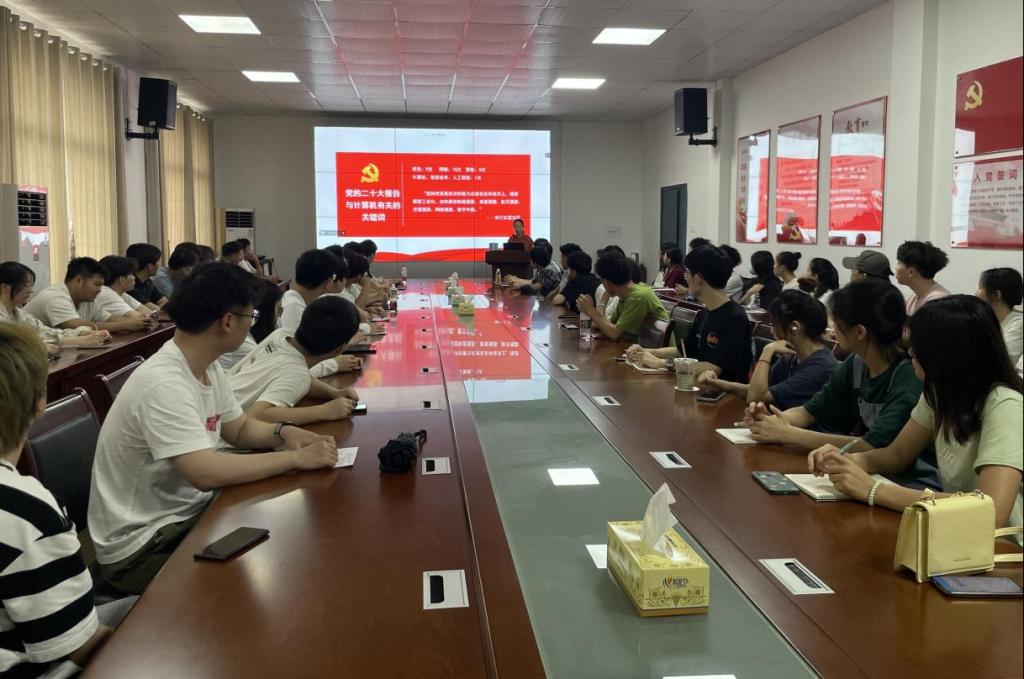 本次培训中,黄书记以“学习党的二十大,做新时代好青年”为主题,从五个方面向同学们详细讲述了党的二十大精神,引导同学们学习新观点、新论断、新思想。黄书记通过对二十大报告中提到的与计算机相关关键词的解读,鼓励同学们要努力学习专业知识,今后为我国的计算机发展贡献自己的力量。黄书记还从十年来的三件大事、党的中心任务等方面进行了详细的讲解,使同学们对中国共产党、中国化时代化的马克思主义有了进一步的了解。