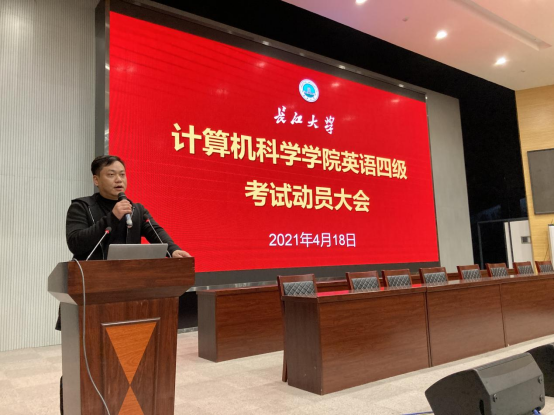 接下来,詹炜副院长讲述了自己学生时代学英语的艰难环境,“现在优越的环境为同学们营造了良好的学习条件,应珍惜当下,努力学习”。詹院长从学生个人发展角度,强调了英语四六级成绩在未来就业竞争中的重要地位,希望同学们做好规划,都能学有所成。
