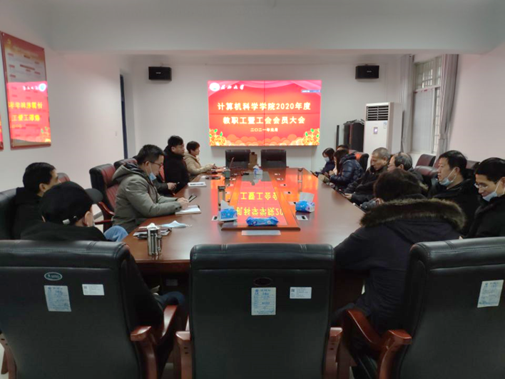 召开了2020年度教职工暨工会会员大会,线上线下同步进行,部分教师代表在4教307会议室参加了现场会议。会议由工会主席、分党委副书记颜学俊主持。