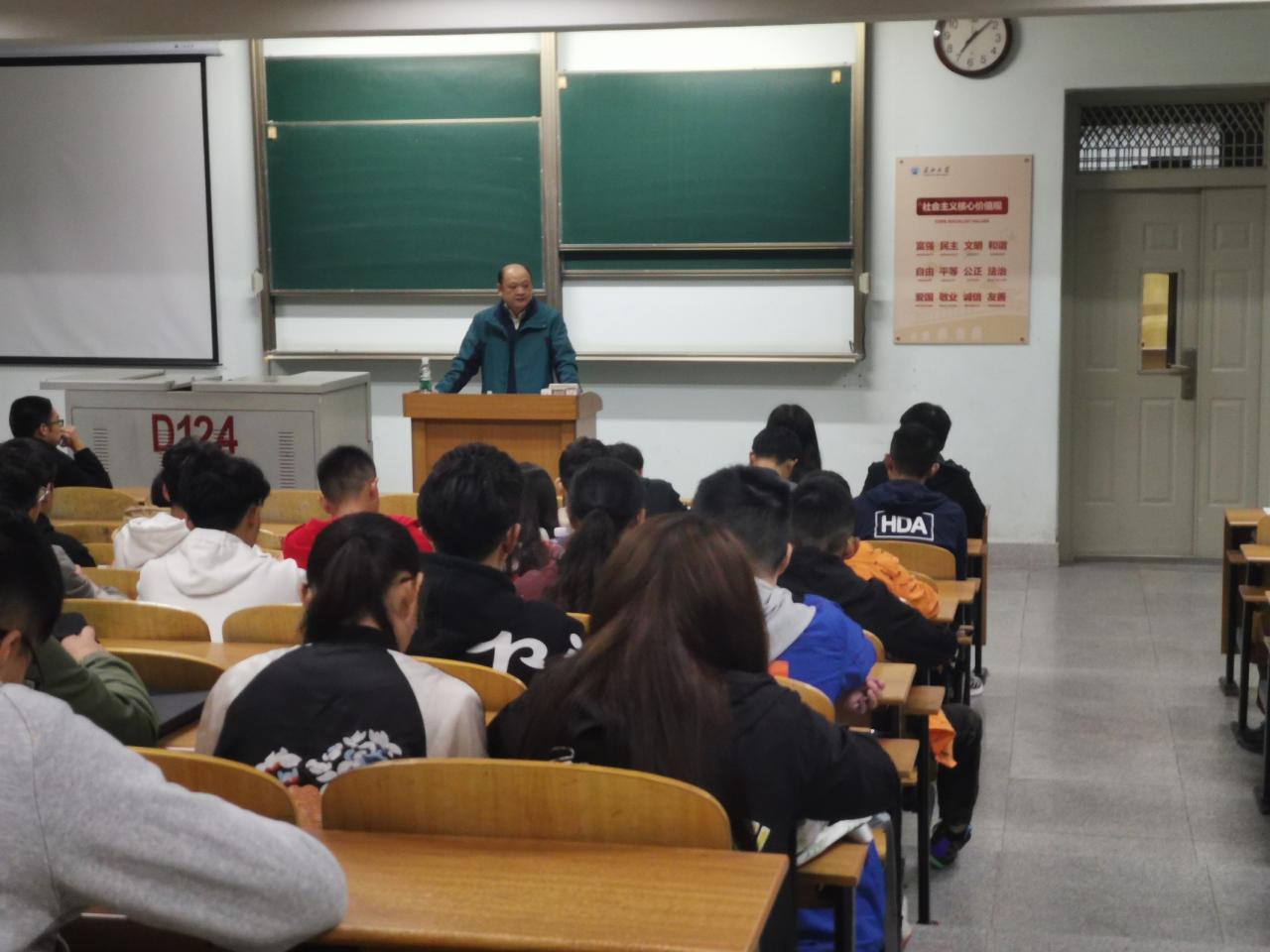 党委书记高明成同志在13教D124进行了以“坚定理想信念 做对党忠诚为党尽责的合格党员”为主题的专题党课讲授活动。大福online官网