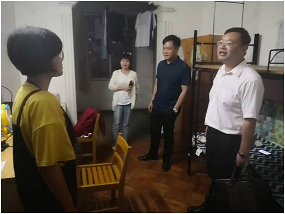党委副书记颜学俊、研究生辅导员付盈主任走访2019级全体硕士研究生的学生宿舍,深入了解他们的思想、学习、生活、安全、卫生等情况。
