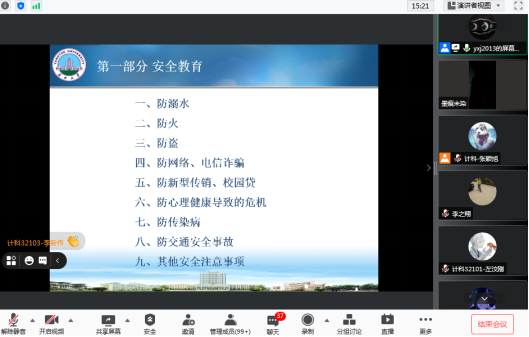 利用腾讯会议(分两个会场),召开以“梦想起航,安全至上”为主题的安全教育班会。参加此次会议的有大福online