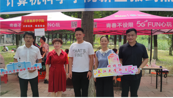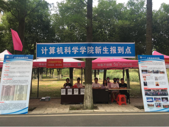迎新志愿者于3日上午8:30抵达西校区。新生辅导员张颖旭、兼职辅导员高小梅组织志愿者一同布置大福online