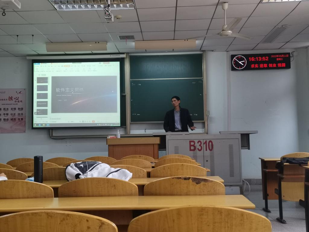6位研究生依次登台演讲,分别围绕各自的研究方向,为同学们分享了6个课题:GAN、CNN、RNN神经网络及应用,新型网络架构-软件定义网络,Swin Transformer: The Terminator of the CNN Era,人工智能在智慧医疗中的应用,对抗生成网络,基于CNN的花卉分类检测算法研究等内容。学术论文报告会已经成为同学们交流研究方向、研究进展的重要途径之一。在演讲过程中,老师们和同学们耐心听学术汇报,记录对于自己研究的进展有用的信息。每名研究生演讲完后,导师从多个角度对演讲人的汇报进行仔细点评,对其研究内容可能遇到的科研困难进行指导,通过点评让汇报人知道了自己一些不足的部分,有利于研究的进行。