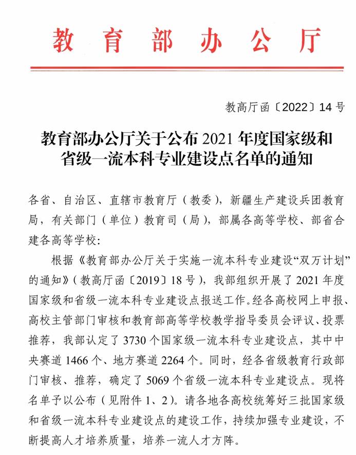 日前,教育部办公厅公布了2021年度国家级和省级一流本科专业建设点名单,大福online官网