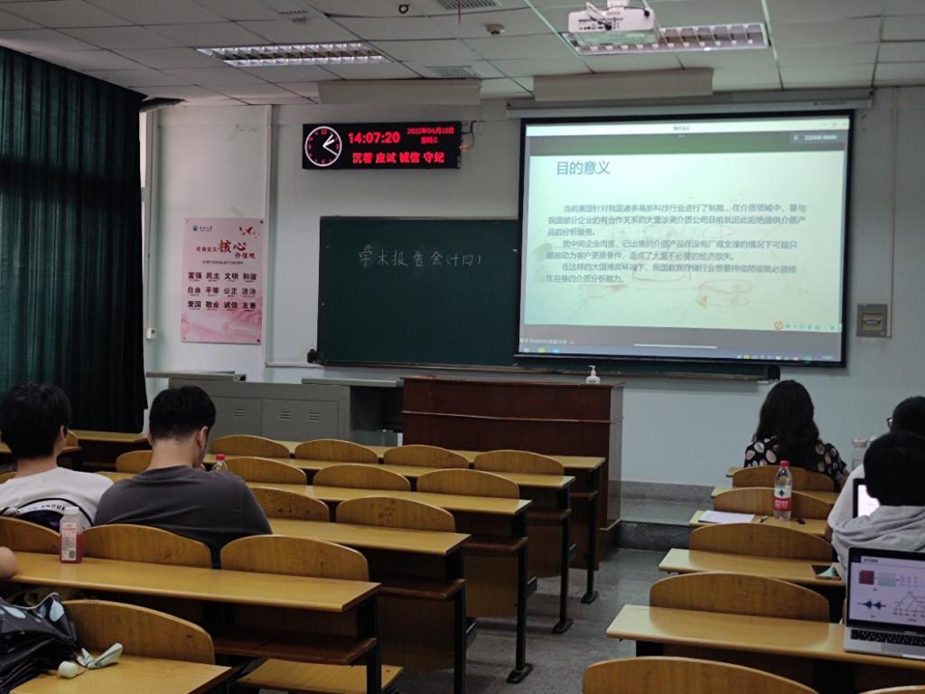 2022年研究生学术论文报告会第十四讲顺利开展。学术论文报告会由硕士生导师秦航、黄岚老师莅临指导。