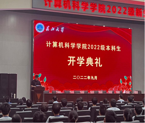 随后由教师代表发言,计算机科学与技术系主任雷鸣老师提到了荆州深厚的文化底蕴,鼓励大一新生们勇于尝试,活出自我。