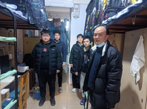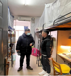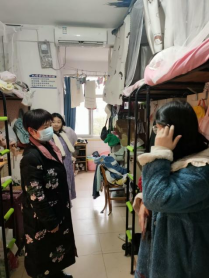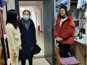 院长、书记的带领下一起走进学生宿舍,看望返校的学生。