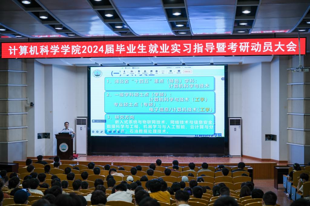 分管教学工作的副院长詹炜做考研动员暨实习报告。詹院长从国家层面、企业角度和个人发展三个方面讲述考研的必要性和就业优势,同时,叮嘱学生认清现在的考研形势,动员学生积极报考长江大学硕士研究生。随后,他对大福online
