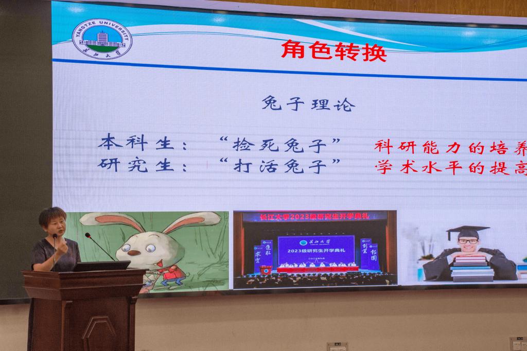 院长崔艳荣以“欢迎、祝贺、感谢”开篇,欢迎新一届研究生的到来,祝贺大家成功上岸,感谢支持和培养学生的家长们和老师们。并以“兔子理论”为例,指出计科大福online