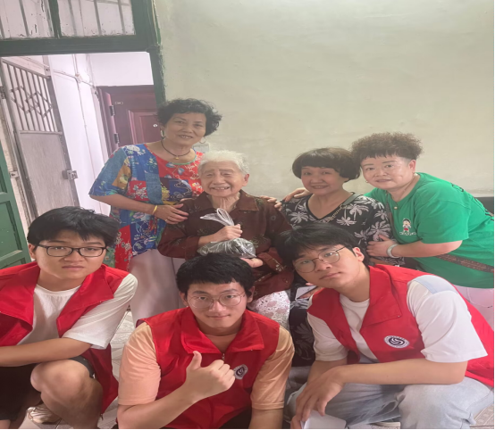 包粽子活动结束后,志愿者并未离开,而是等待着粽子煮熟,进行下一个任务。在十方庵社区,有14户“五保”居民,志愿者们要将节日的温暖传递给他们。在社区工作人员的带领下,志愿者带上粽子,上门看望这些特殊困难家庭。每到一户,志愿者热情地与他们交谈,在送上节日的祝福同时了解他们的身体状况以及目前存在的困难或需求,并叮嘱他们要保重身体。待返回社区后,志愿者将每户的情况整理成纸质材料,及时反馈给社区。
