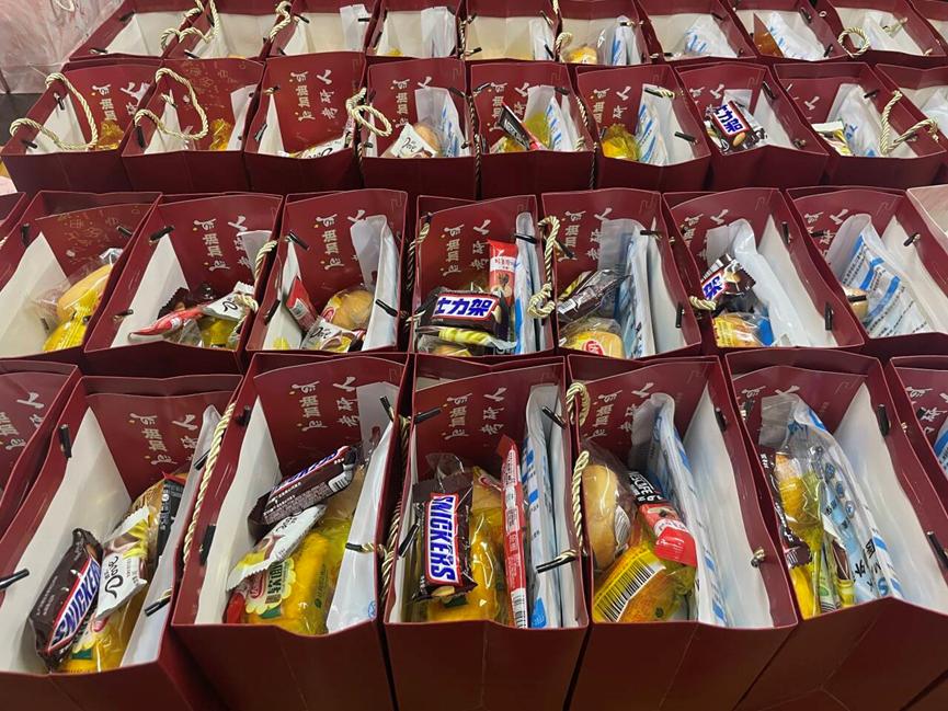 精心准备的考研礼包,里面有研究生学长学姐亲笔手写的“研气满满”的祝福卡片、面包、牛奶、咖啡、士力架、巧克力和口罩,使同学们切身感受到大福online
