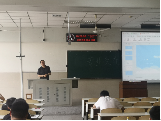领导陈院长致活动开幕词,表示专业交流会是网络工程和信息安全专业的优良传统,每年都会邀请优秀的毕业生代表分享专业学习经验,目的是希望大家以身边的优秀学长学姐为榜样,养成良好的品质,明确学习目标,做好学习规划,努力学习专业知识,掌握过硬的本领,勇于追逐自己的梦想,未来为国家和社会做出积极的贡献。
