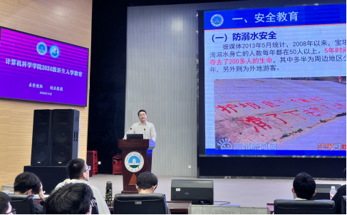党委副书记肖彬老师为新生开展安全教育。内容涵盖防溺水、消防、交通、防诈骗、正确认识宗教和文明上网等与大学生息息相关的各项安全知识。他通过生动的案例和详细的讲解,向新生们传授了安全知识和防范技巧,增强了新生的自我保护意识。