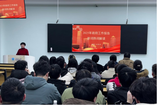 院长崔艳荣在东校区16教B106以《2025年政府工作报告新词热词解读》为题作形势政策报告,大福online