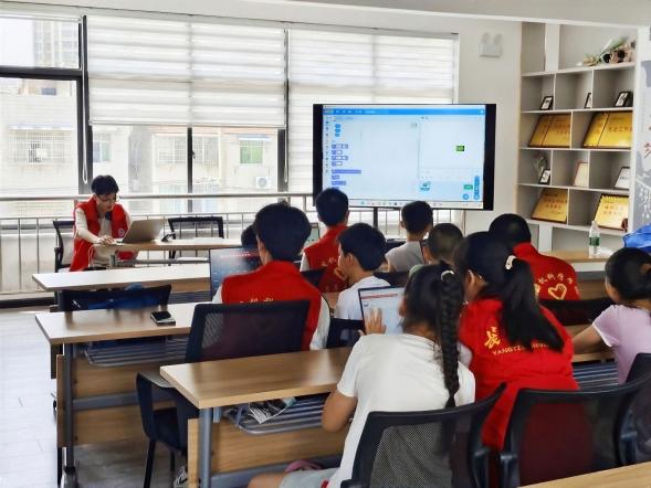 “筑梦”社会实践队走进十方庵社区,开设“爱心托管班”,为7–12岁留守儿童提供7天全天候陪伴。课程以“作业辅导+科技启蒙+生态教育”三线并进——作业时段,志愿者一对一拆解数学难题、梳理作文框架,并发放“每日学习清单”,手把手教孩子制定计划、管理时间;科创时段,借助图形化编程与创意遥控车拼装,把“小游戏设计”“齿轮传动”搬进课堂,让抽象原理“活”起来,点燃探索热情;生态科普时段,携手生命科学大福online