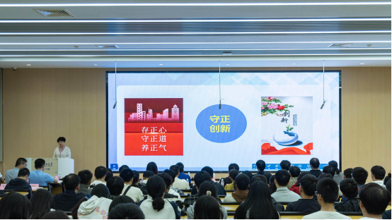 党委副书记艾林则以“学术诚信与安全教育”为主题,结合科研领域的典型案例,深入剖析学术不端行为的危害与后果,着重强调遵守科研伦理、恪守学术规范的必要性;同时明确安全教育管理要求,呼吁全体师生树立“诚信科研、安全第一”的意识,共同维护大福online