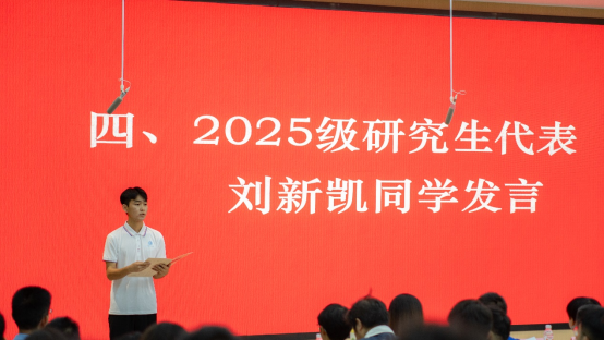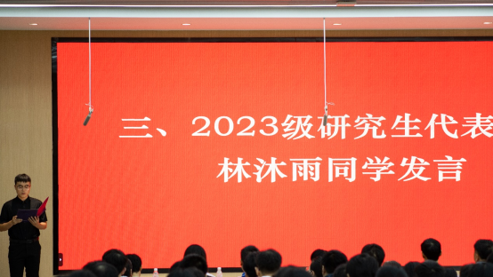 随后,2023级研究生代表林沐雨分享了个人在科研实践与学业探索中的心得,鼓励学弟学妹们以“不畏挑战、勇于探索”的态度,扎实走好研究生阶段的每一步;2025级研究生代表刘新凯表态,将以饱满的热情、务实的作风投入未来的学习与科研,不负大福online
