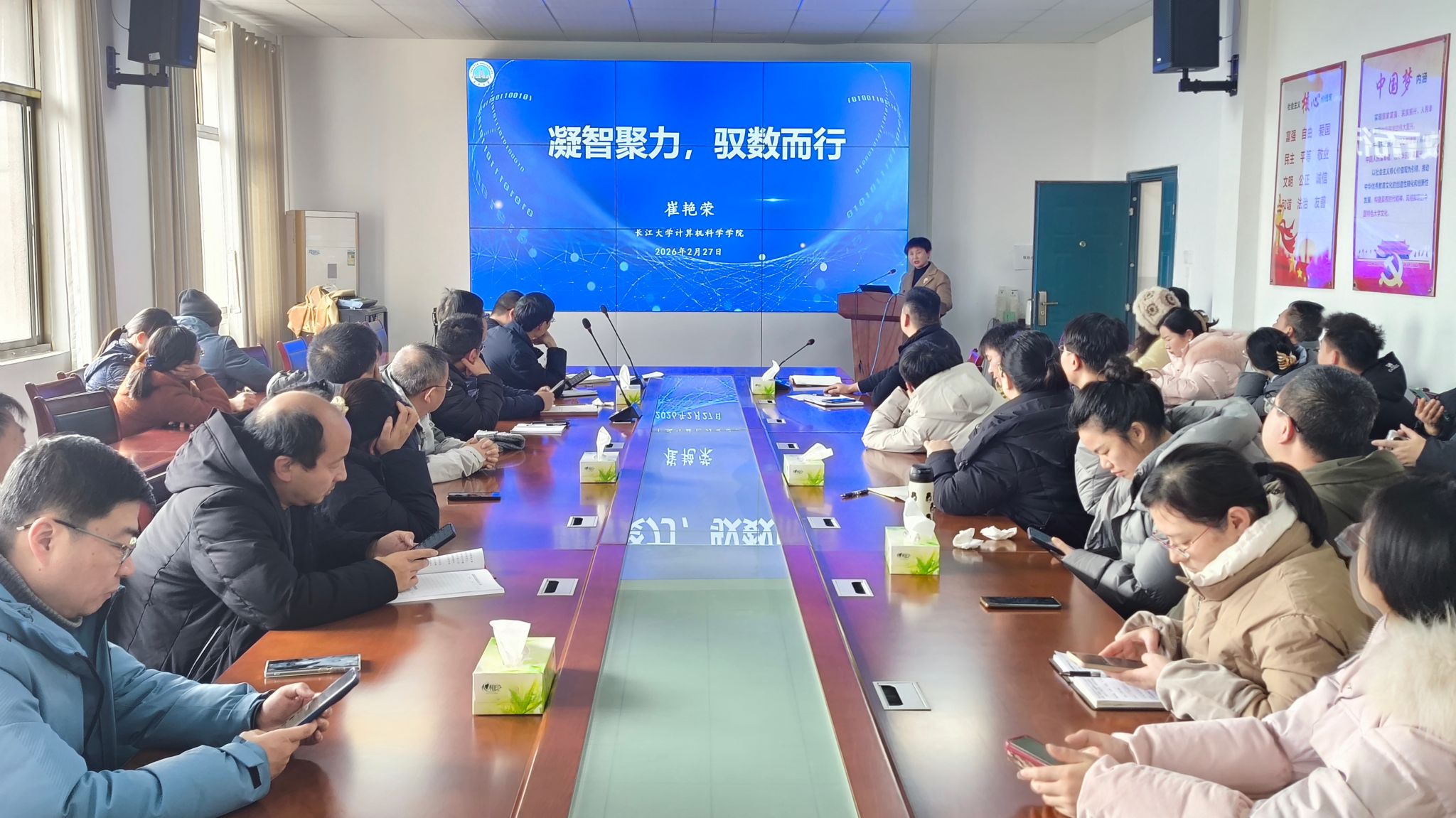 院长崔艳荣先后传达了学校近期会议精神,汇报了大福online
