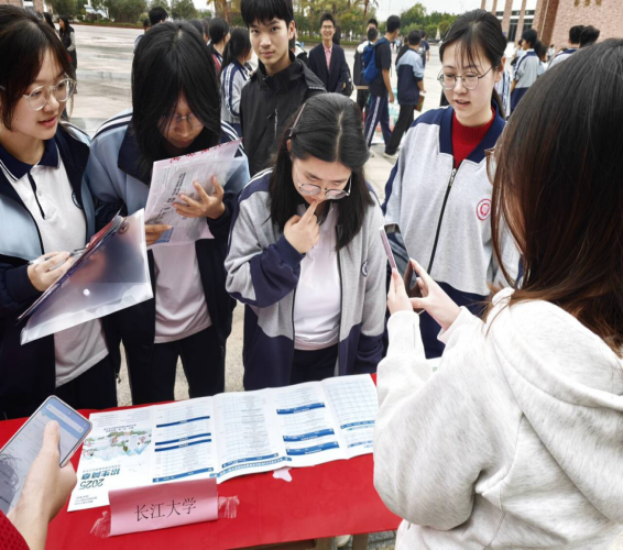 宣讲现场,学子们各展所长、亮点纷呈,全方位展现长江大学的办学魅力。他们详细讲解学校招生优势、录取分数线、专业设置、奖助体系等核心信息;为高一学生分享真实大学生活与成长感悟,为高三学子讲解优势学科、志愿填报技巧,并结合自身经历分享备考方法与心态调整策略。不少团队还创新宣讲形式,发放文创礼品、设置互动问答,融入地域文化元素拉近与听众距离,让宣讲更具吸引力和实效性。