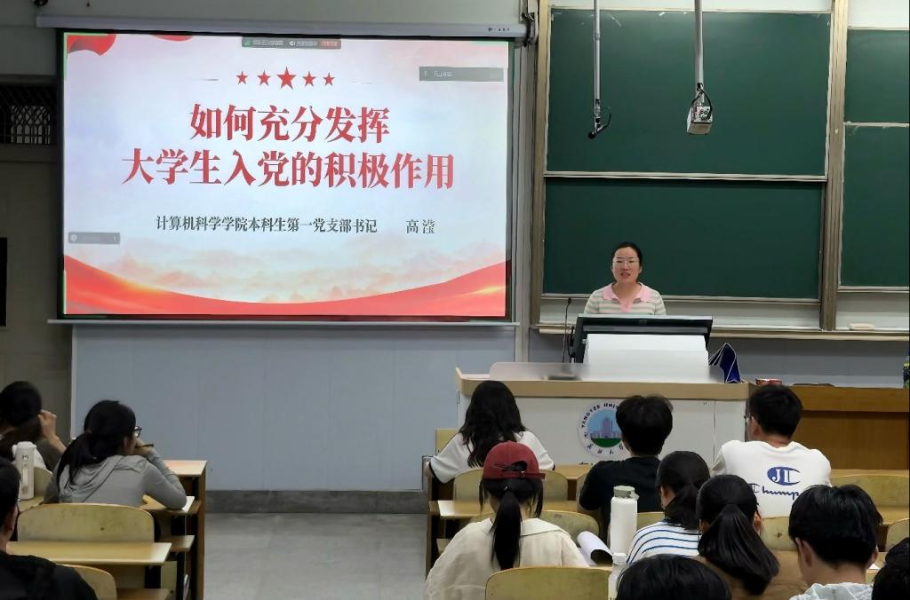 分党委在东校区13-A-102教室举办专题党课,本科生第一党支部书记高滢以“如何充分发挥大学生入党的积极作用”为主题授课,170余名入党积极分子、发展对象和预备党员参加。