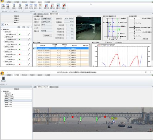 ② 直观形象的桥梁净空/水位监控界面,全面实时地反反映了仪表读数、桥梁净空、四种水位数据;