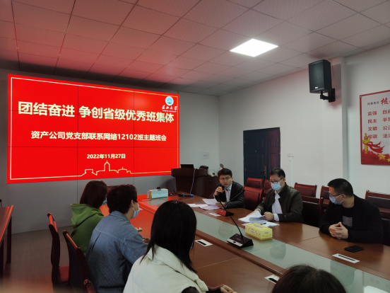 在五教501会议室开展了“团结奋进,争创省级优秀班集体”——资产公司党支部联系网络12102班主题班会。长江大学资产公司总经理王凌华、副总经理郝勇、成果转化专干张国庆,大福online